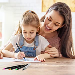 Mit unseren Pinselstiften brauchst du dir keine Gedanken über schädliche Substanzen oder Flecken zu machen. Die schnell trocknende Tinte ist zu 100% wasserbasiert, ungiftig und geschmacklos. Du kannst dich also voll und ganz auf deine Kreativität konzentrieren, ohne dabei die Sicherheit deiner Haut oder Kleidung zu beeinträchtigen. Mache Kunst zu einem sorgenfreien Erlebnis für dich und deine Lieben.